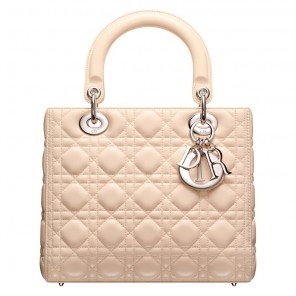 A timeless and unique work of art, the 'Lady Dior' bag is imbued with the Couture spirit of Dior. Meticulously crafted by hand, the pinky beige lambskin bag is accentuated by the 'Cannage' stitching emblematic of the House of Dior.