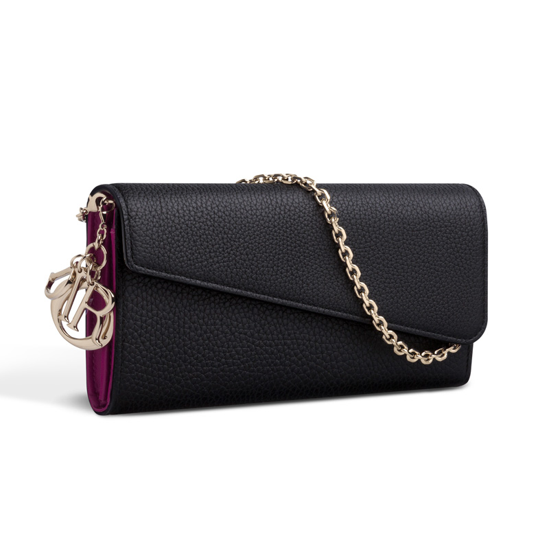 A true journey through the senses, the "Diorissimo" line embodies the craftsmanship of Dior. The exquisite bullcalf leather and the contrasting black exterior and Rose Indien interior give this "Rencontre" wallet charm and character. The originality of its diagonal flap makes it an essential model.