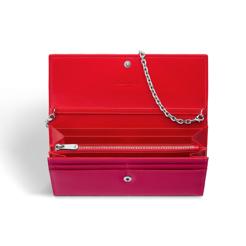 - "Rendez-Vous" wallet in glossy fuchsia grained calfskin