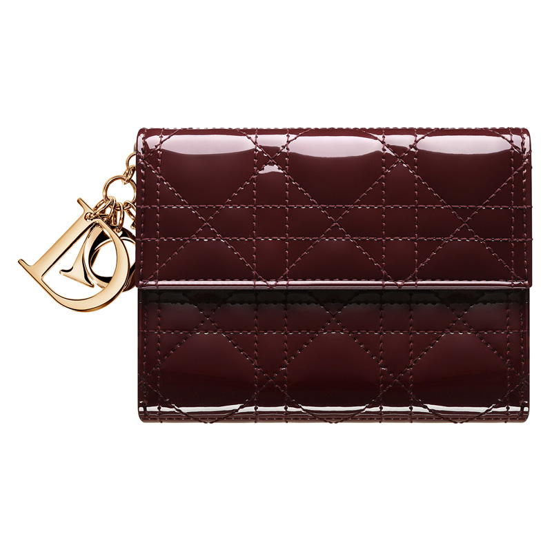 Rouge Fonce patent leather combined Lady Dior medium wallet