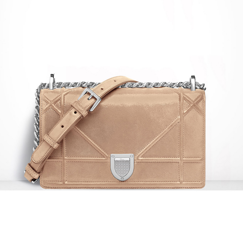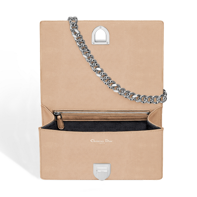 - Small "Diorama" flap bag in beige iridescent nubuck calfskin