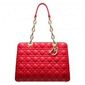 The zipped tote bag in Rouge Vif lambskin's specificity lies in its iconic "Cannage" stitching.