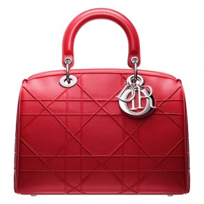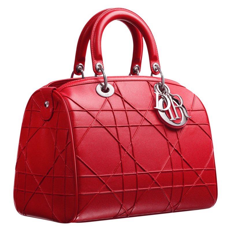 This crimson red lambskin model features hand-stitched "Cannage" embroidery.