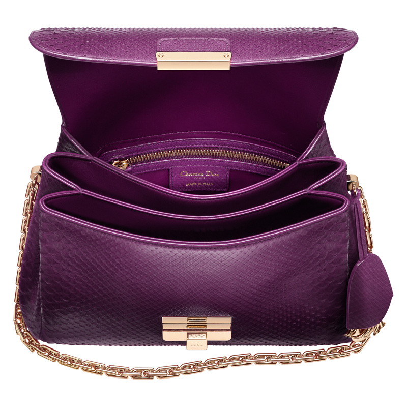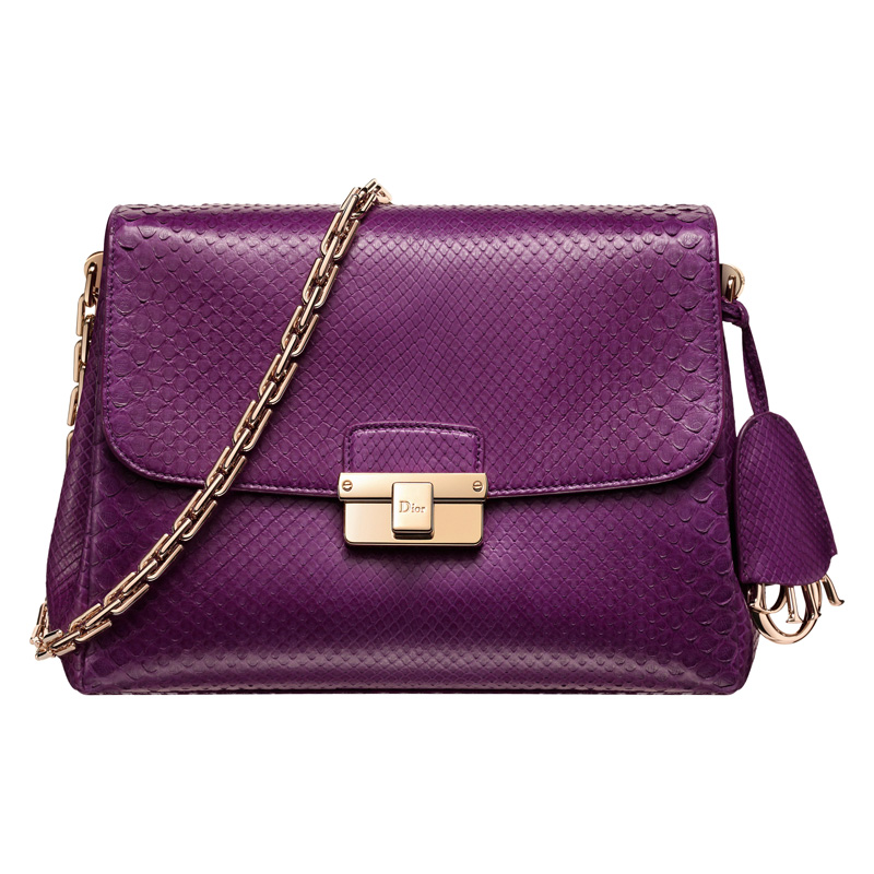 Precious python skin, the clever magnetic clasp and feminine chain offer a chic, laid-back look.