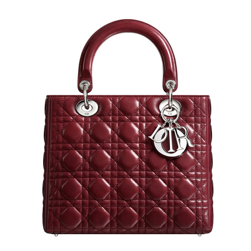 For Autumn 2011, this quilted lambskin bag is adorned with a sublime vine colour. Its 'Cannage' stitching, an architectural Dior signature, is its distinctive feature.