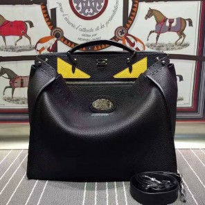2017 Fendi Men Selleria Peekaboo handbag in leather, leather handbag, with raw edge and 1204 hand-sewn stitches and Bag Bugs inlay