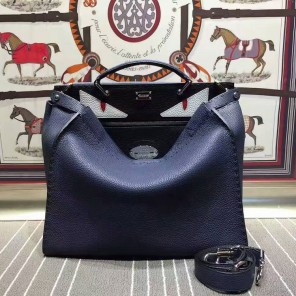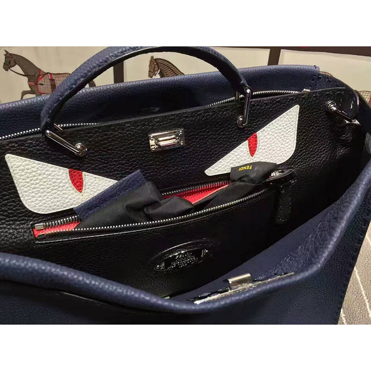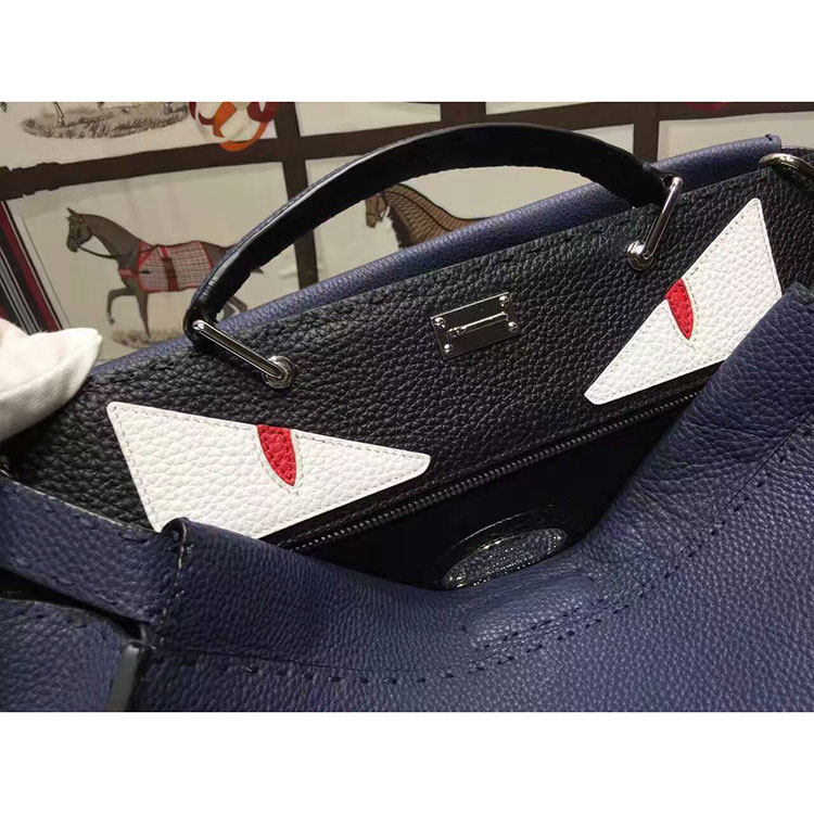 2017 Fendi Men Selleria Peekaboo handbag in leather, leather handbag, with raw edge and 1204 hand-sewn stitches and Bag Bugs inlay