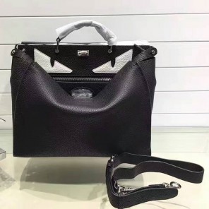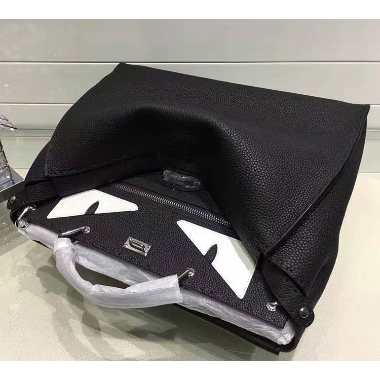 2017 Fendi Men Selleria Peekaboo handbag in leather, leather handbag, with raw edge and 1204 hand-sewn stitches and Bag Bugs inlay