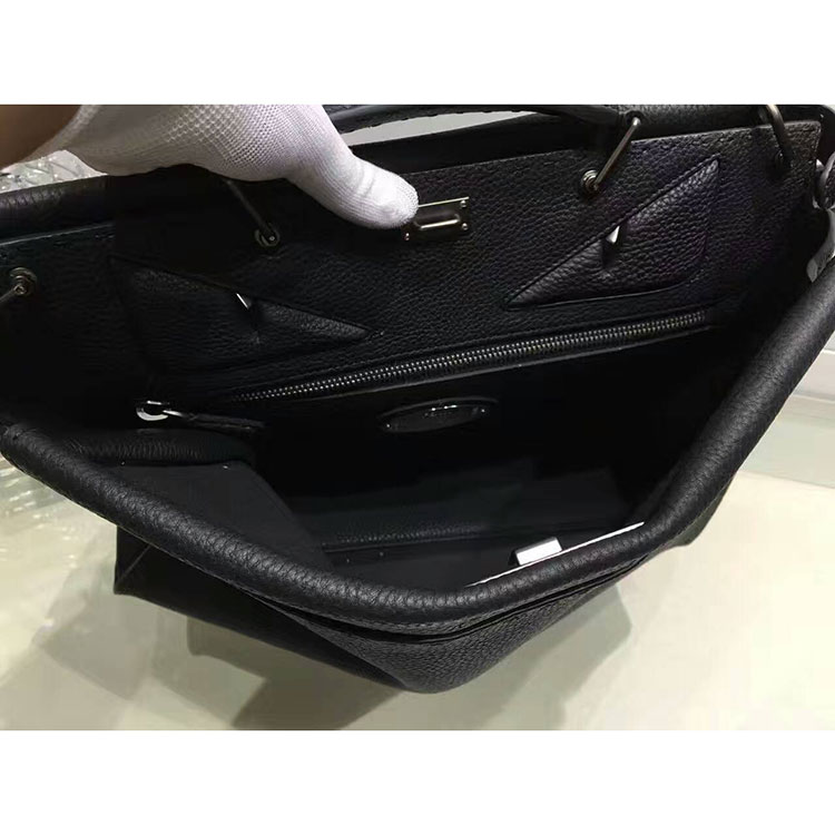 2017 Fendi Men Selleria Peekaboo handbag in leather, leather handbag, with raw edge and 1204 hand-sewn stitches and Bag Bugs inlay
