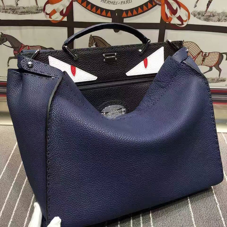 2017 Fendi Men Selleria Peekaboo handbag in leather, leather handbag, with raw edge and 1204 hand-sewn stitches and Bag Bugs inlay