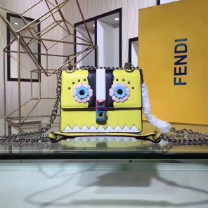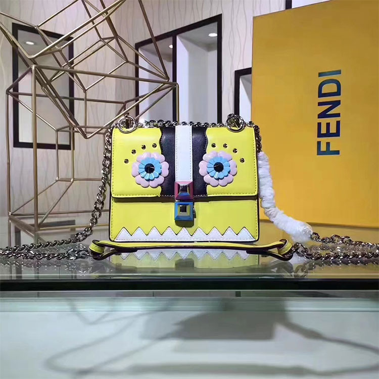 - With a square, compact design. Decorated with contrasting inlays, studs and flower details that recreate the Fendi Faces motif.