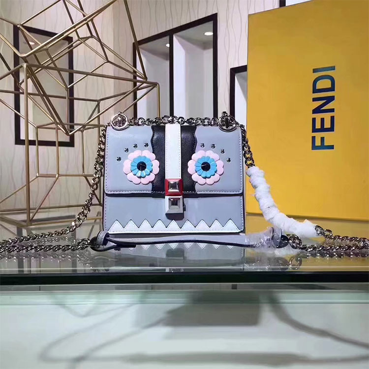 - With a square, compact design. Decorated with contrasting inlays, studs and flower details that recreate the Fendi Faces motif.