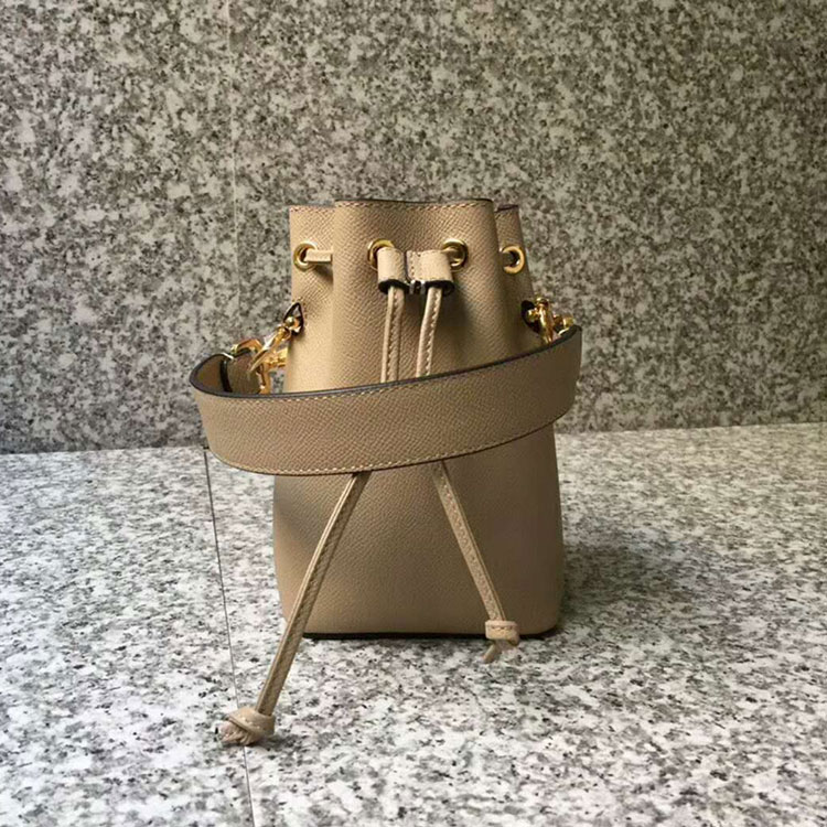 - Small bucket bag with drawstring fastening and metal decorations in the form of the Fendi logo.
