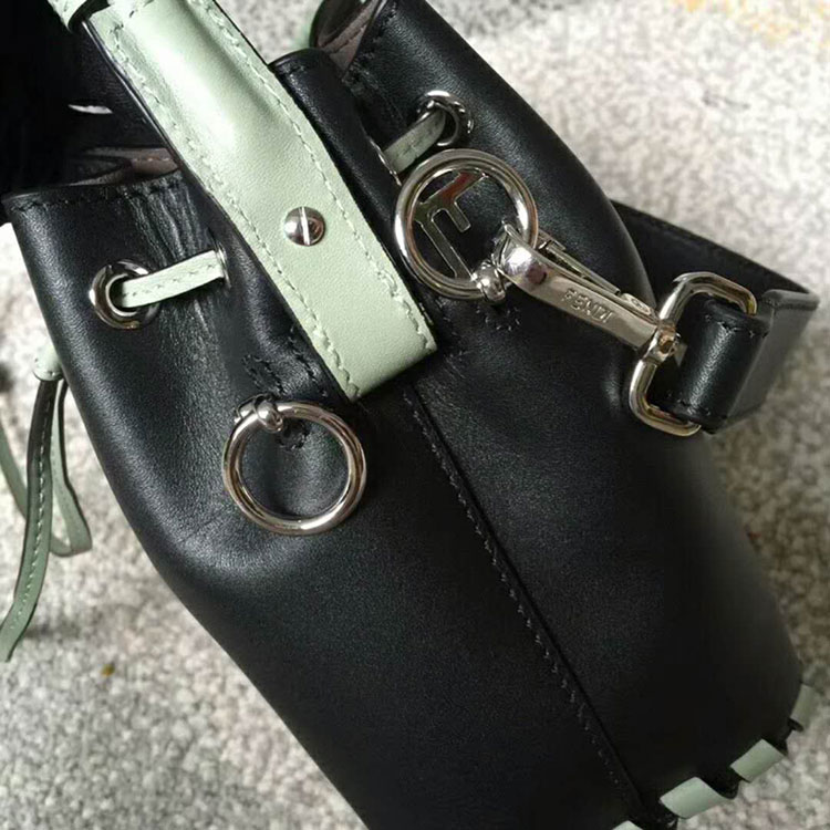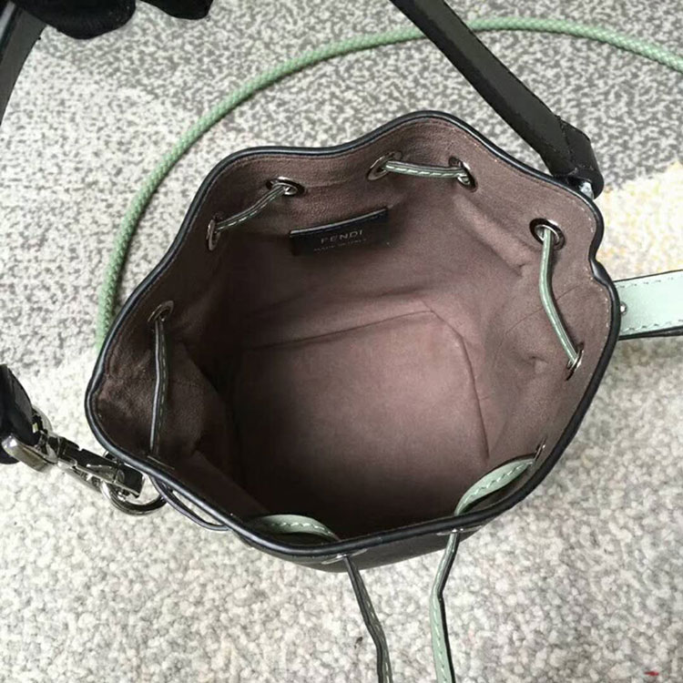 - Small Mon Tresor bucket bag with drawstring fastening and metal decorations in the form of the Fendi logo.