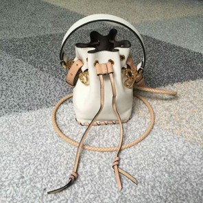- Small Mon Tresor bucket bag with drawstring fastening and metal decorations in the form of the Fendi logo.