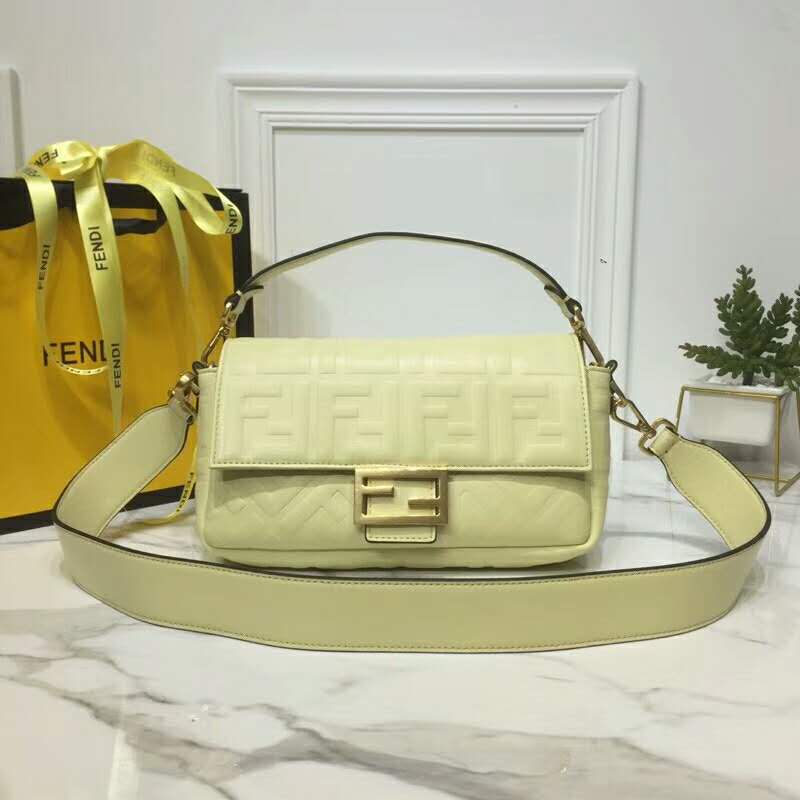 - Detachable shoulder strap made in calfskin featuring all-over FF motif with a soft, 3D texture.