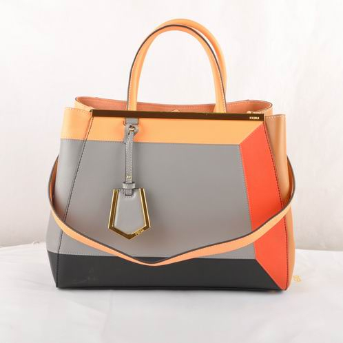 The Cikuan legendary handbags colorful logo top with slender metal band, multi-color stitching configuration, the effect is perfect.