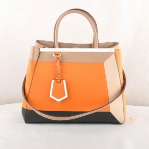 The Cikuan legendary handbags colorful logo top with slender metal band, multi-color stitching configuration, the effect is perfect.