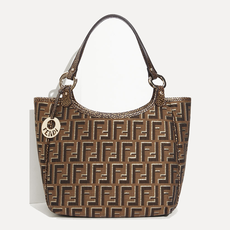 Shimmering goldtone fibers add rich dimension to the classic Zucca logo jacquard that defines a chic shopper. Gilded leather trim and a goldtone logo charm dangling at one side elevate the look.