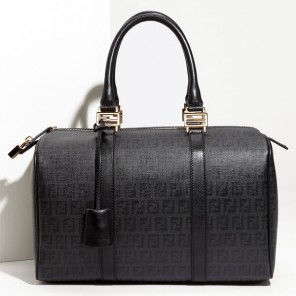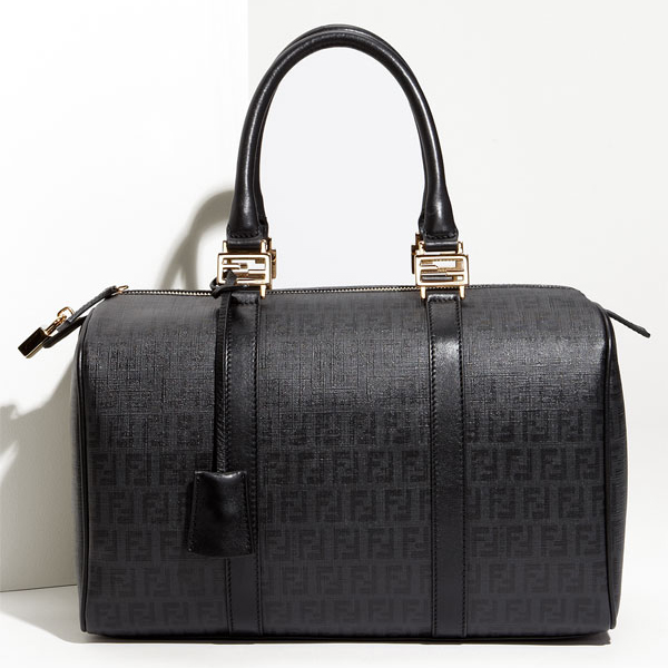 Coated logo-jacquard satchel with goldtone hardware is enriched by smooth leather trim and accented with a glistening lock for stylish security.