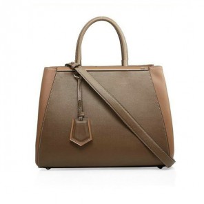 Fendi 2Jours Original Leather Tote Bag F2552M Khaki