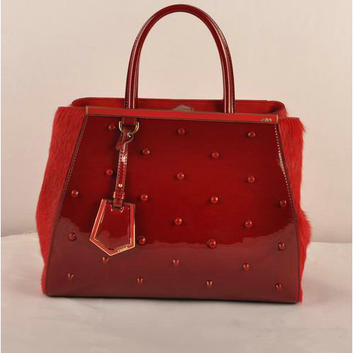 Fendi 2Jours Patent Leather Horsehair Tote Bag F2552M Red