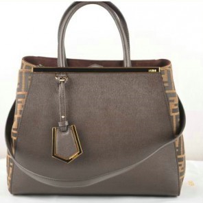 Fendi 2Jours Saffiiano Leather Fabric Tote Bag F2552M Brown