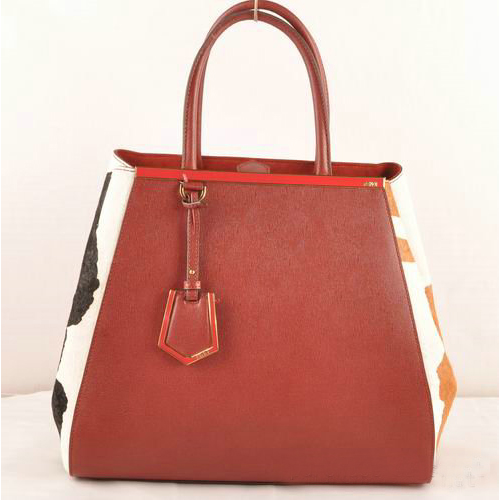 Fendi 2Jours Saffiiano Leather Horsehair Tote Bag F2552L Red&Black