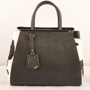 Fendi 2Jours Saffiiano Leather Horsehair Tote Bag F2552M Black&White