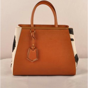 Fendi 2Jours Saffiiano Leather Horsehair Tote Bag F2552M Tan&Black