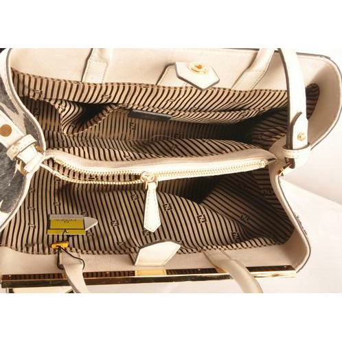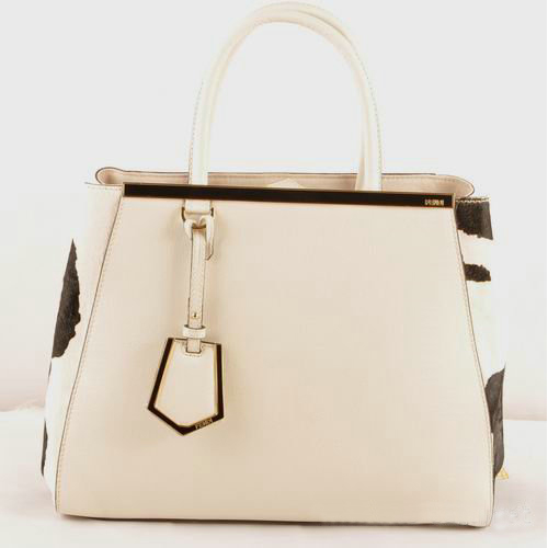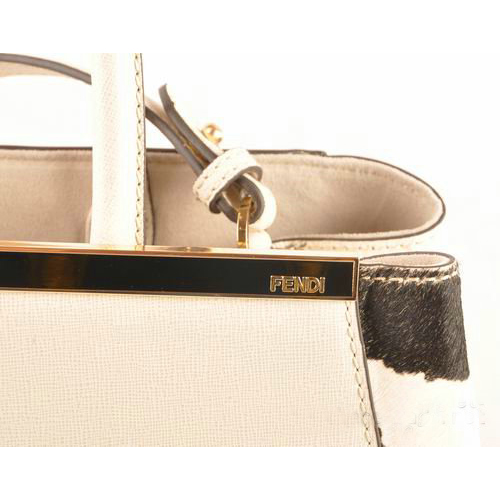 Fendi 2Jours Saffiiano Leather Horsehair Tote Bag F2552M White&Black