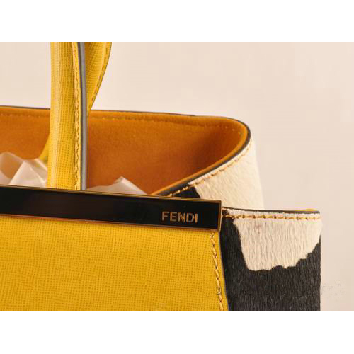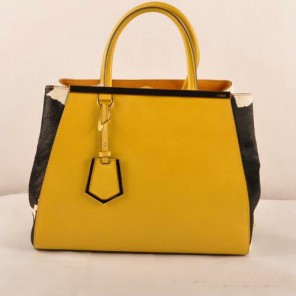 Fendi 2Jours Saffiiano Leather Horsehair Tote Bag F2552M Yellow&Black