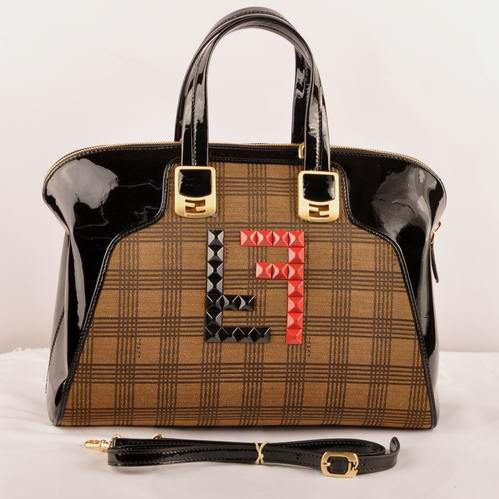 Fendi Chameleon Bag Patent Leather with Fabric F2537 Black