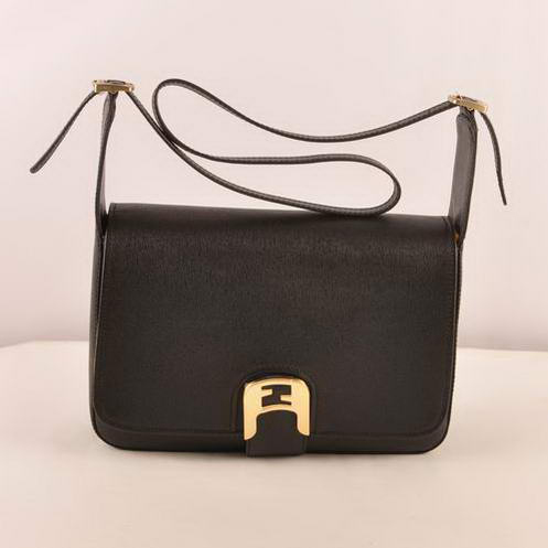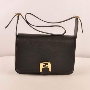 Fendi Chameleon Classic Saffiiano Leather Medium Shoulder Bag 2539 Black
