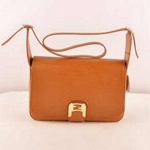 Fendi Chameleon Classic Saffiiano Leather Medium Shoulder Bag 2539 Tan