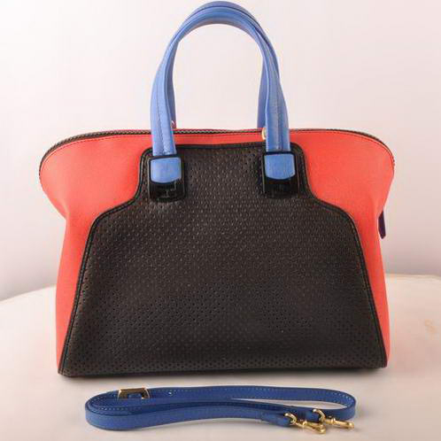 Fendi Chameleon Punch Saffiiano Leather Top Zip Tote Bag 2537 Black-Red