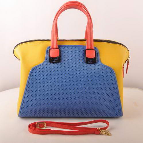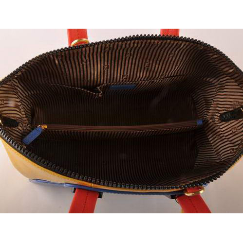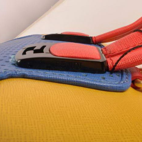 Fendi Chameleon Punch Saffiiano Leather Top Zip Tote Bag 2537 Blue-Yellow