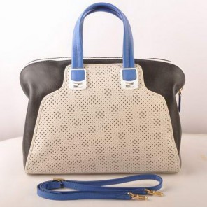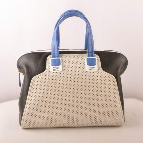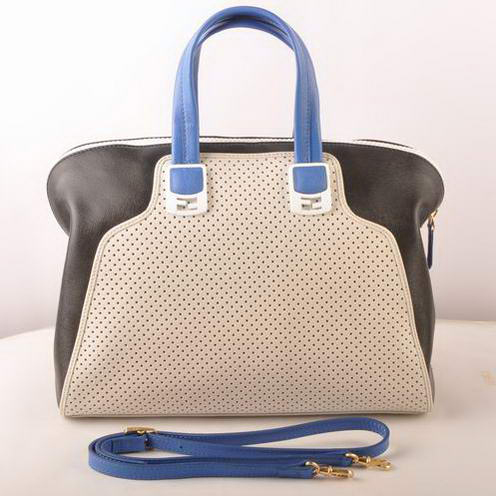 Fendi Chameleon Punch Saffiiano Leather Top Zip Tote Bag 2537 White-Black