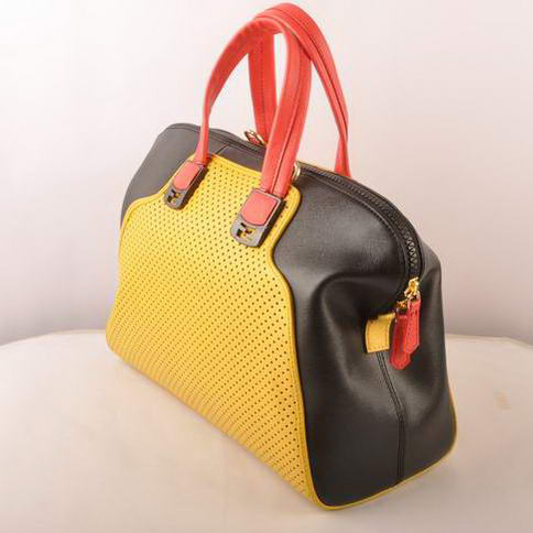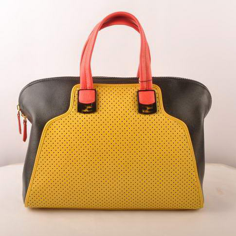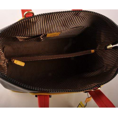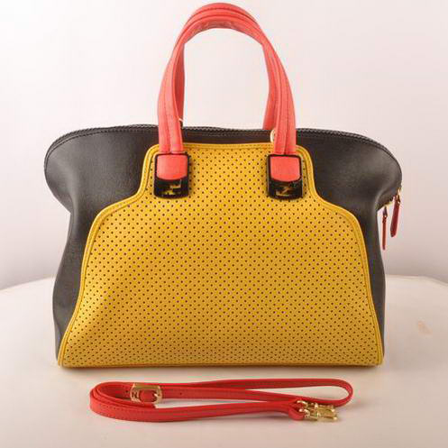 Fendi Chameleon Punch Saffiiano Leather Top Zip Tote Bag 2537 Yellow-Black