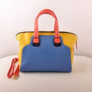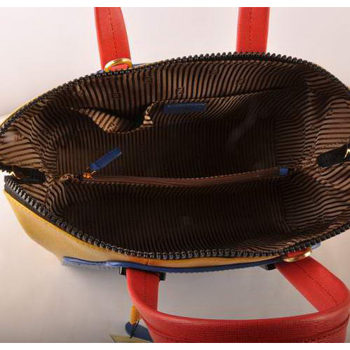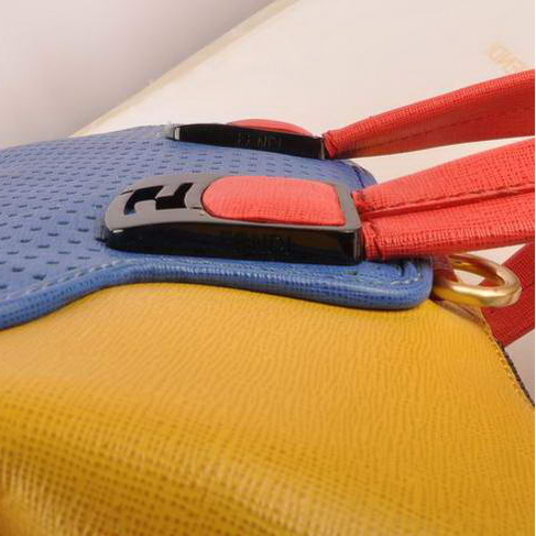 Fendi Chameleon Punch Saffiiano Leather Top Zip Tote Bag 2545 Blue-Yellow
