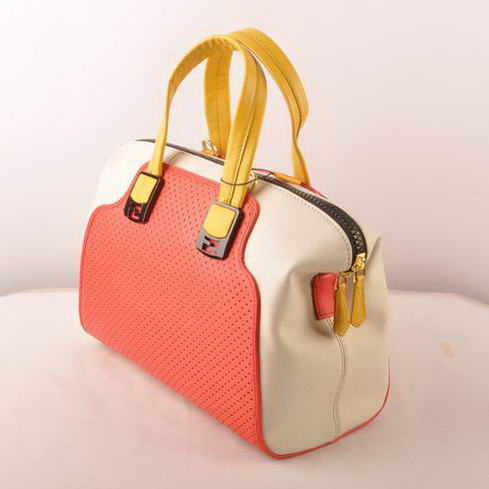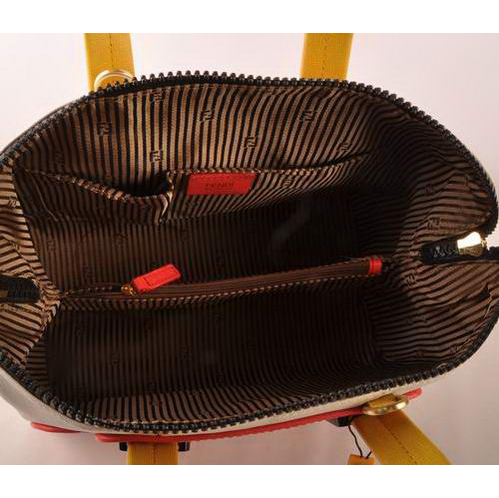 Fendi Chameleon Punch Saffiiano Leather Top Zip Tote Bag 2545 Red-White