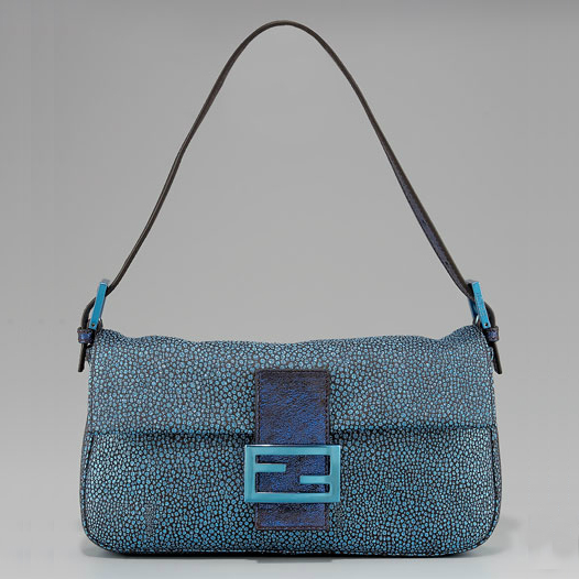 Offering stingray-like light and texture for day or night, this Zucca-embellished Fendi baguette boasts a clean, carry-everywhere silhouette in your choice of covetable saturated hues.