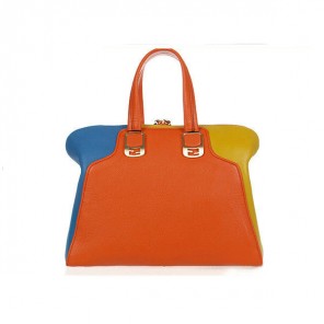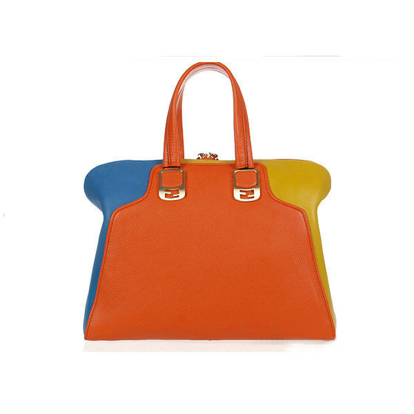 Fendi Large Chameleon Calfskin Top Zip Tote Bag F8812 Orange&Yellow&Blue