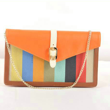 Fendi Pequin Large Canvas Clutch 8M0283 Orange