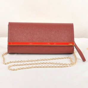 Fendi Pequin Rush Saffiano Pouchette Clutch F2558 Bordeaux