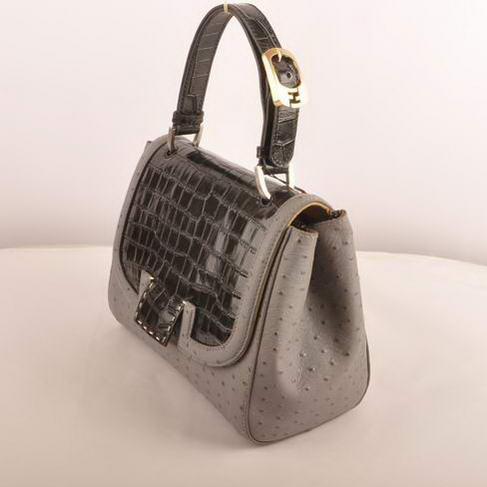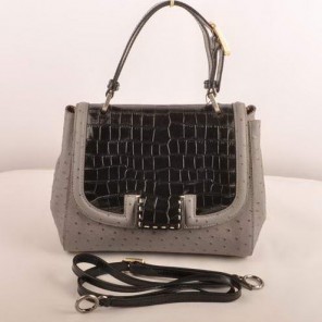 Fendi Silvana Croco-Ostrich Leather Flap Bag 2548 Black-Grey