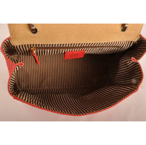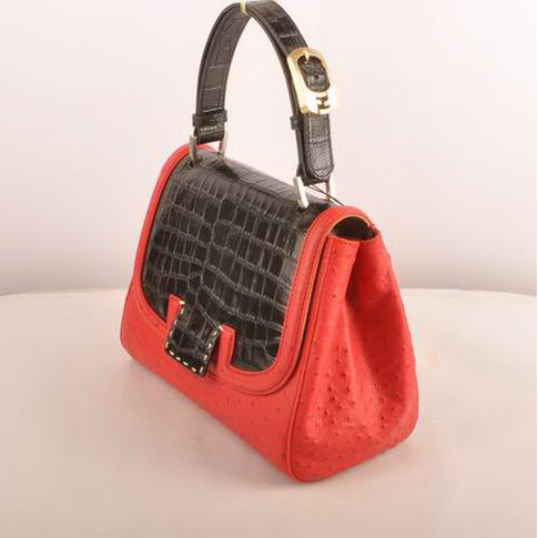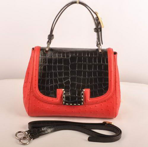Fendi Silvana Croco-Ostrich Leather Flap Bag 2548 Black-Red