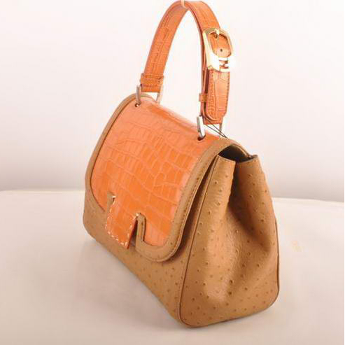 Fendi Silvana Croco-Ostrich Leather Flap Bag 2548 Orange-Tan