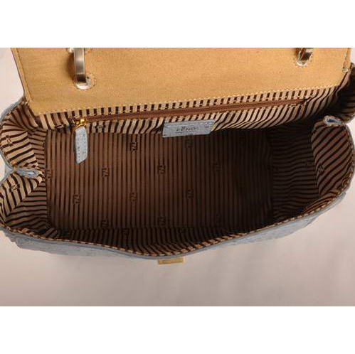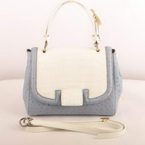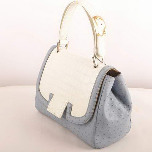 Fendi Silvana Croco-Ostrich Leather Flap Bag 2548 White-Blue