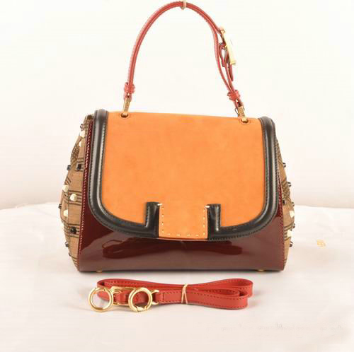 Fendi Silvana Suede&Patent Leather Flap Bag F2548 Tan&Bordeaux
